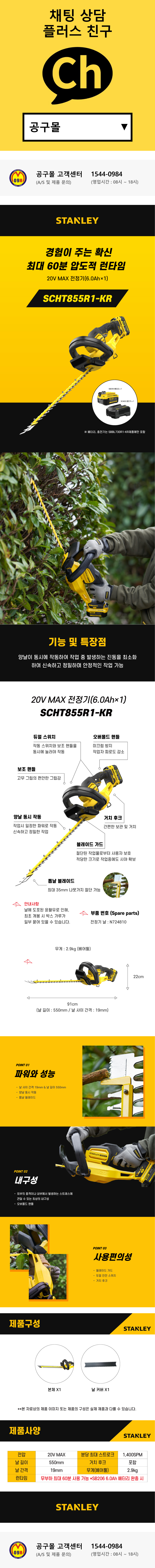 스탠리 20V MAX 충전전정기 SCHT855R1 (20V-6AH 1개세트) 가지치기 충전트리머 헤지트리