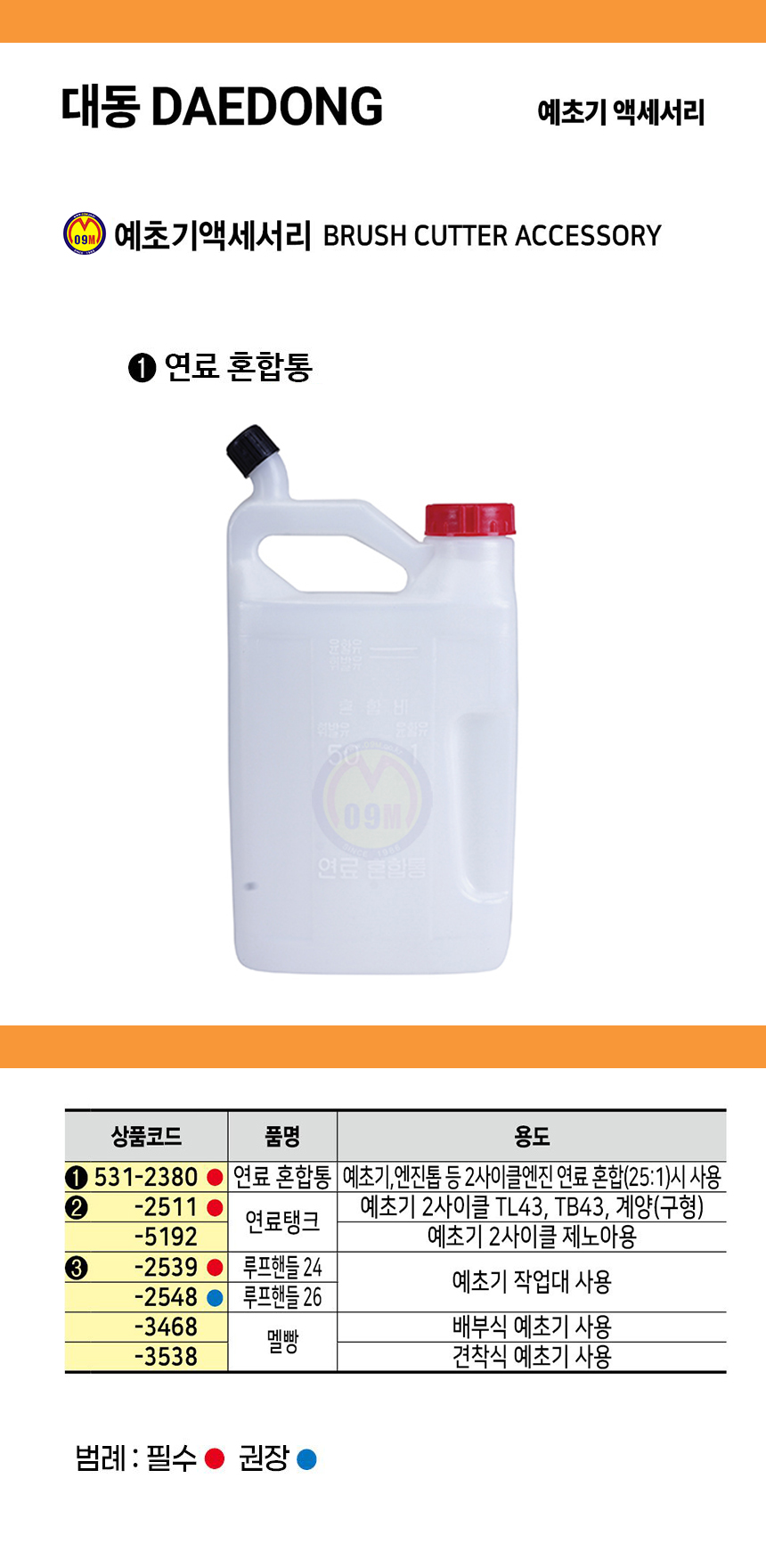 대동 연료혼합통 2L (2사이클 전용) 예초기부품, 부속 공구몰 531-2380