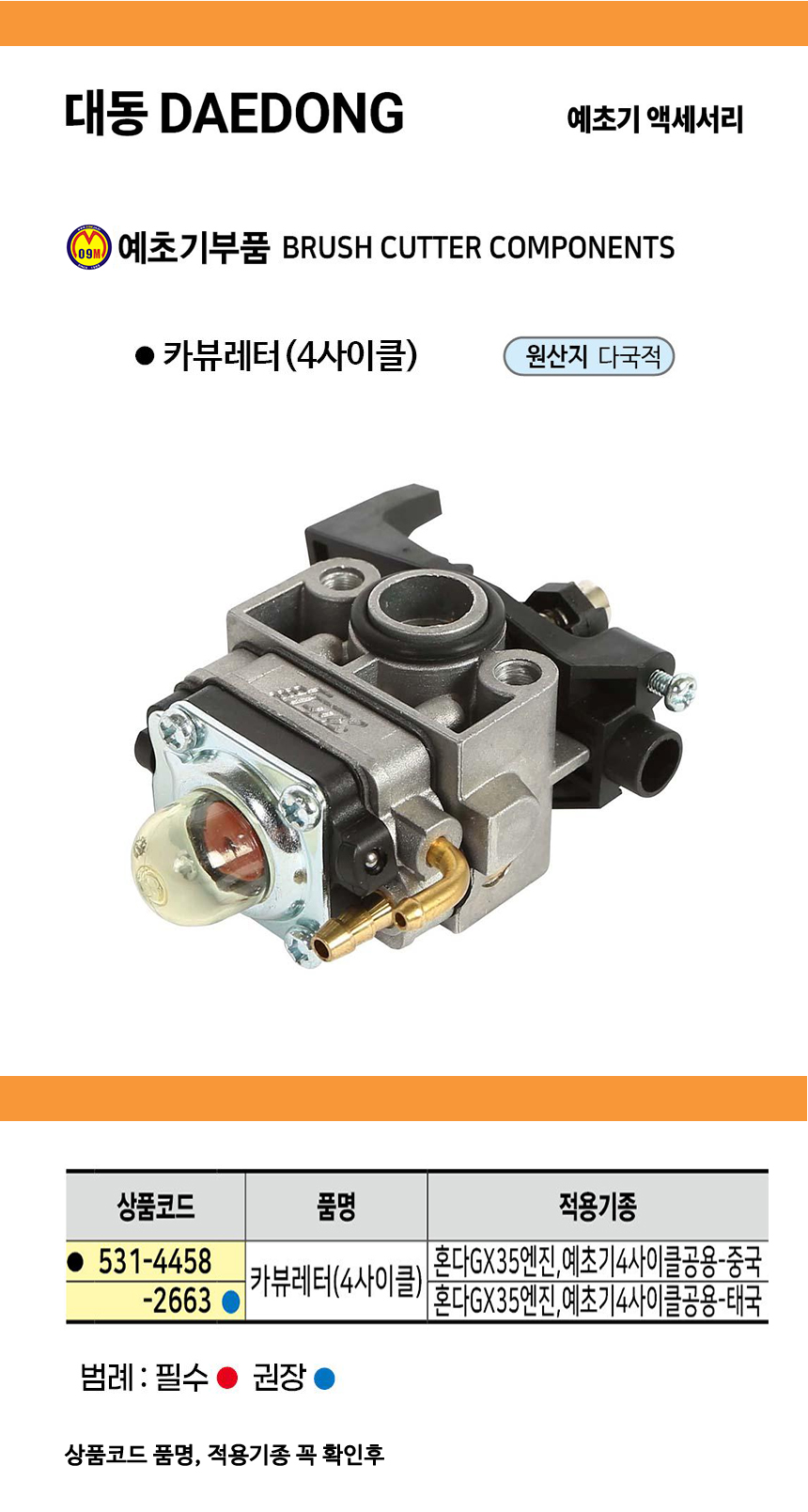 대동 카뷰레터 4사이클용) GX-35(혼다공용) (중국) 부속, 부품 공구몰 531-4458