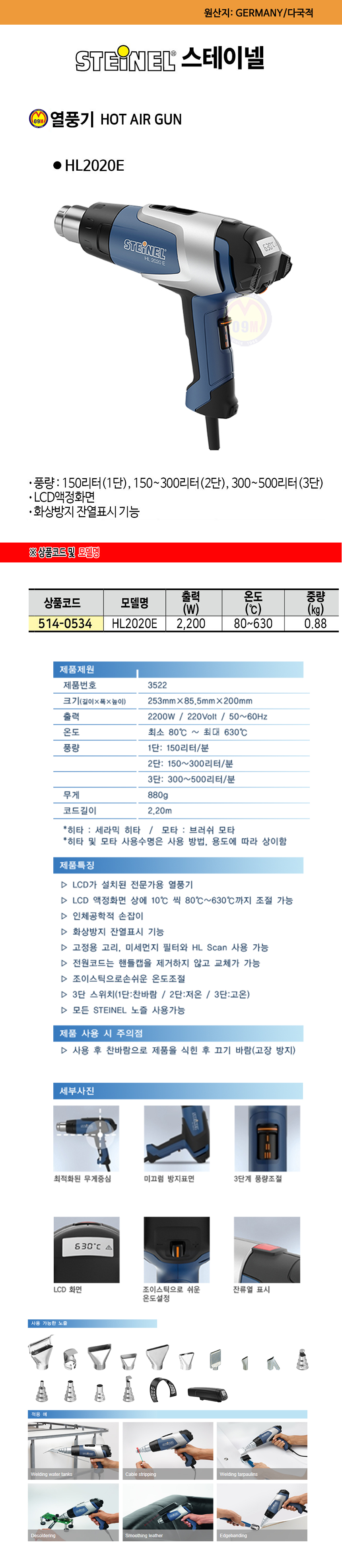 스테이넬 열풍기(LCD) HL2020E 2200W 80-30도 풍량조절 STEINEL 514-0534