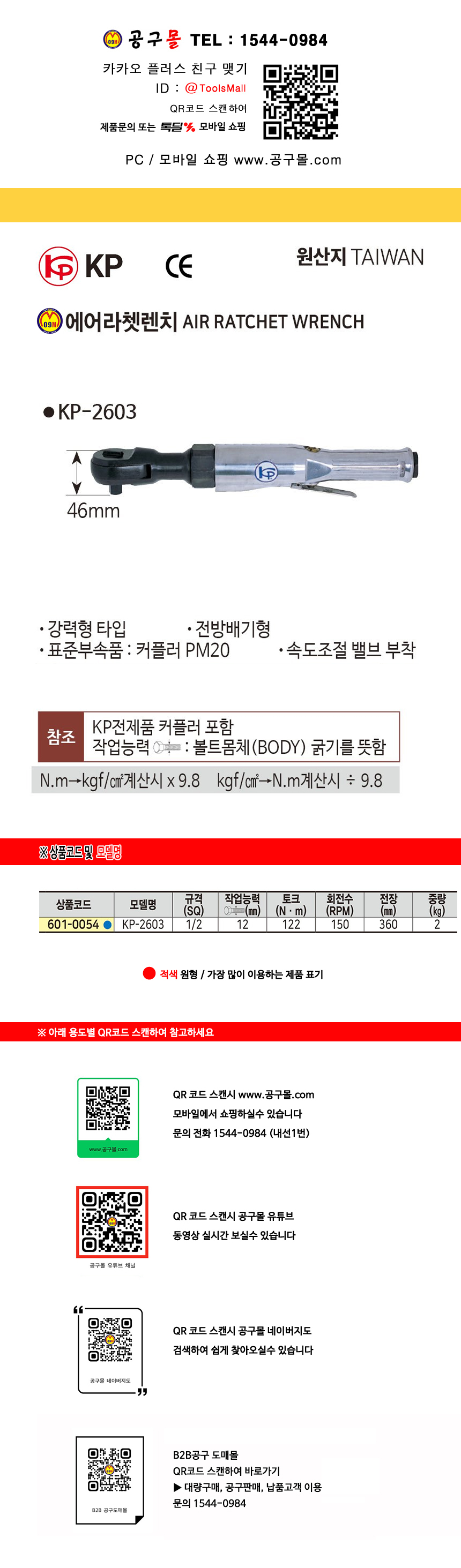 제조사ㆍ원산지 : KP 에어공구 / 대만