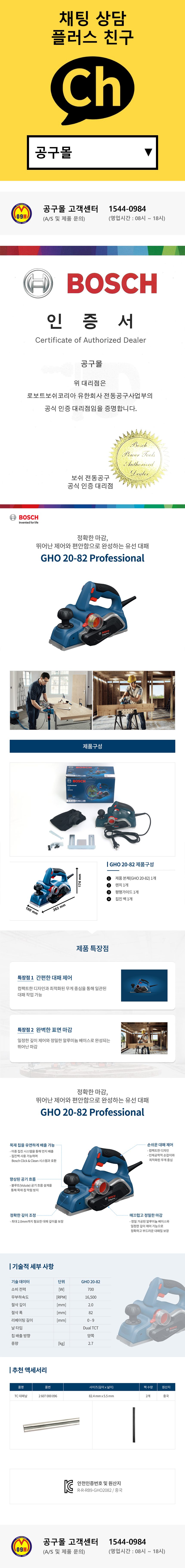 보쉬 전기대패 GHO20-82 (700W) 무선 대페 배터리 충전기 미포함