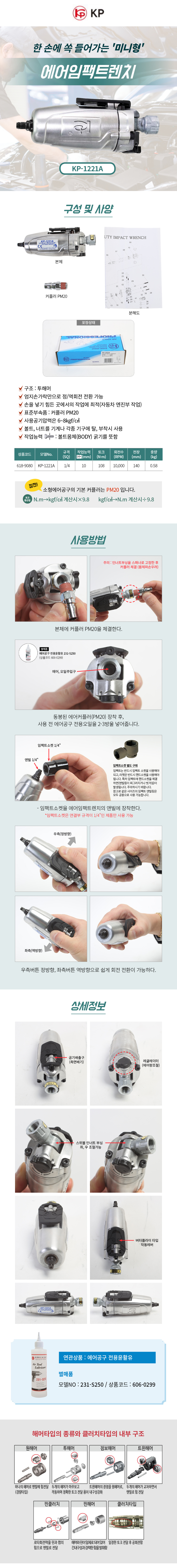 KP 에어임팩트렌치 KP-1221A(1/4SQ)일자형 에어공구, 에어임팩렌치 공구몰 618-9080