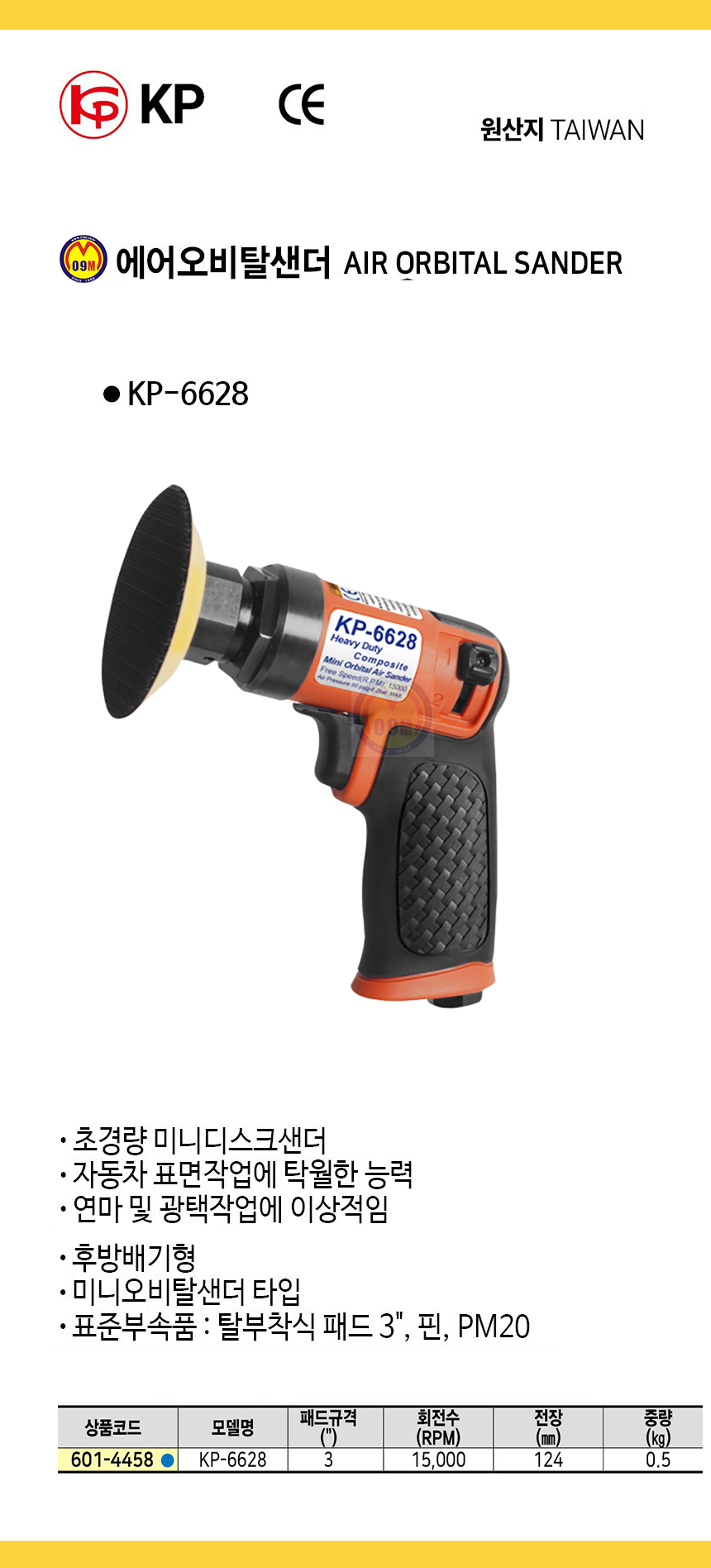 KP 에어오비탈샌더 KP-6628(75mm) 에어공구, 에어샌더, 사포기 공구몰 601-4458