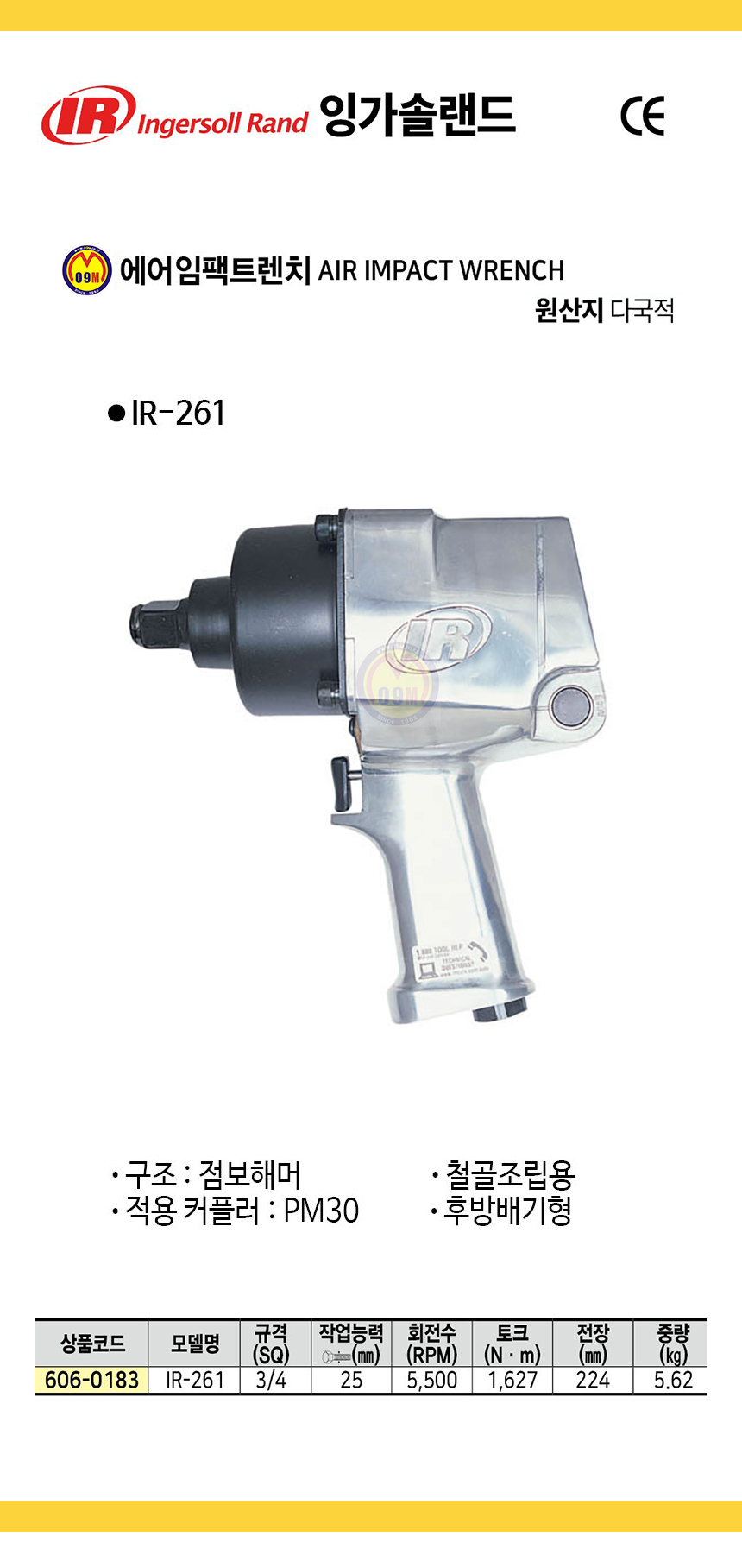 잉가솔랜드 에어임팩트렌치 IR-261 (3/4SQ) 에어렌치, INGERSOLL RAND 공구몰 추천 C606-0183