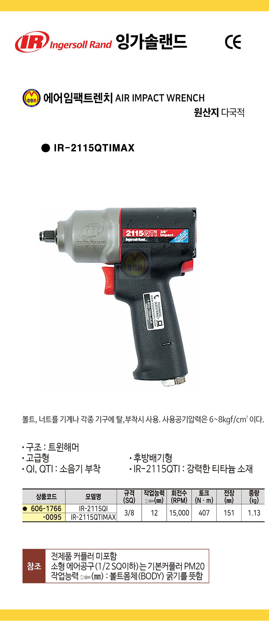 잉가솔랜드 에어임팩트렌치 IR-2115QTIMAX (3/8SQ) 에어렌치, INGERSOLL RAND 공구몰 추천 C606-0095