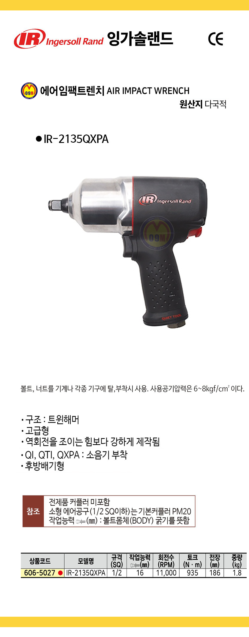 잉가솔랜드 에어임팩트렌치 IR-2135QXPA (1/2SQ) 에어렌치, INGERSOLL RAND 공구몰 추천 C606-5027