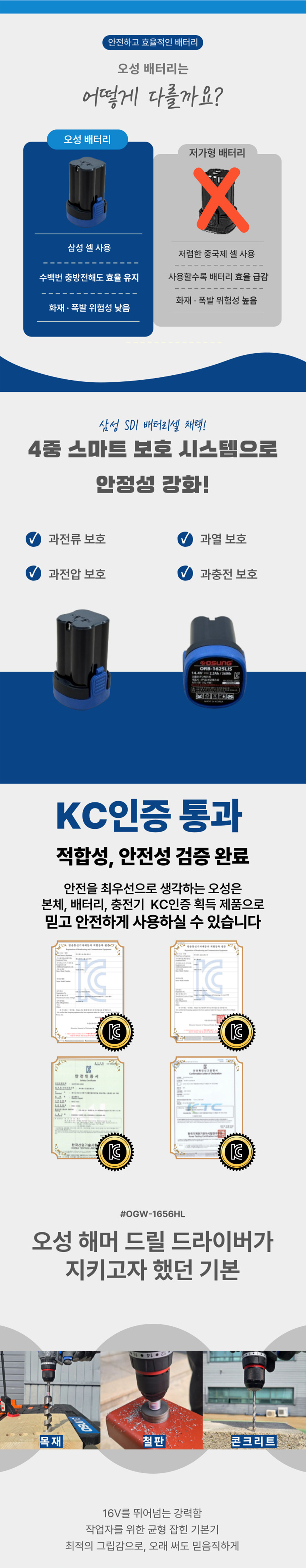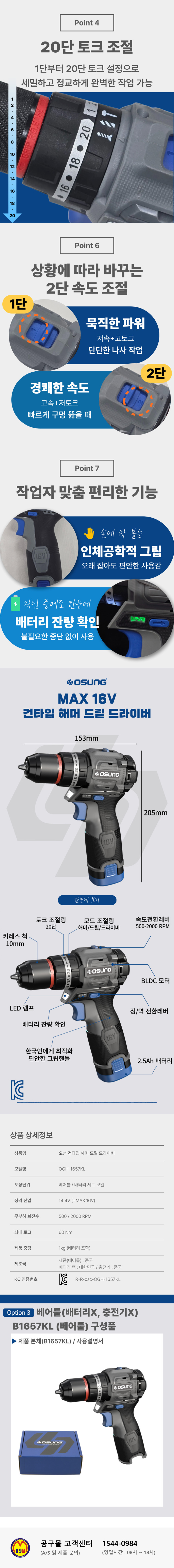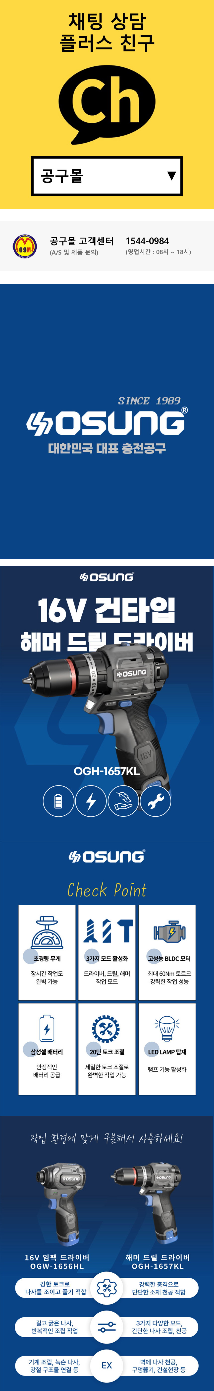 오성 16V 충전해머드릴드라이버 OGH-1657KL (16V-세트) 충전드릴 드라이버
