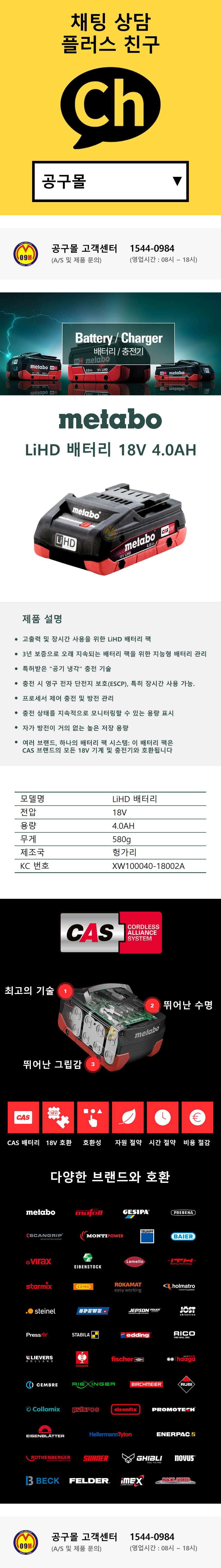 메타보 CAS 배터리 LiHD 18V 4.0AH (타 브랜드 호환 가능)