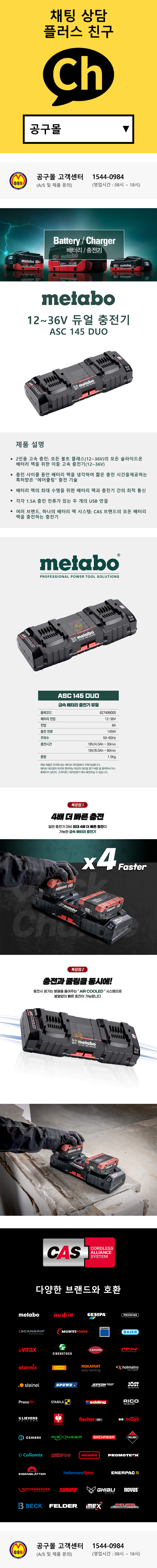 메타보 CAS 듀얼고속충전기 ASC145DUO (12-36V 8A) 급속 듀얼충전기