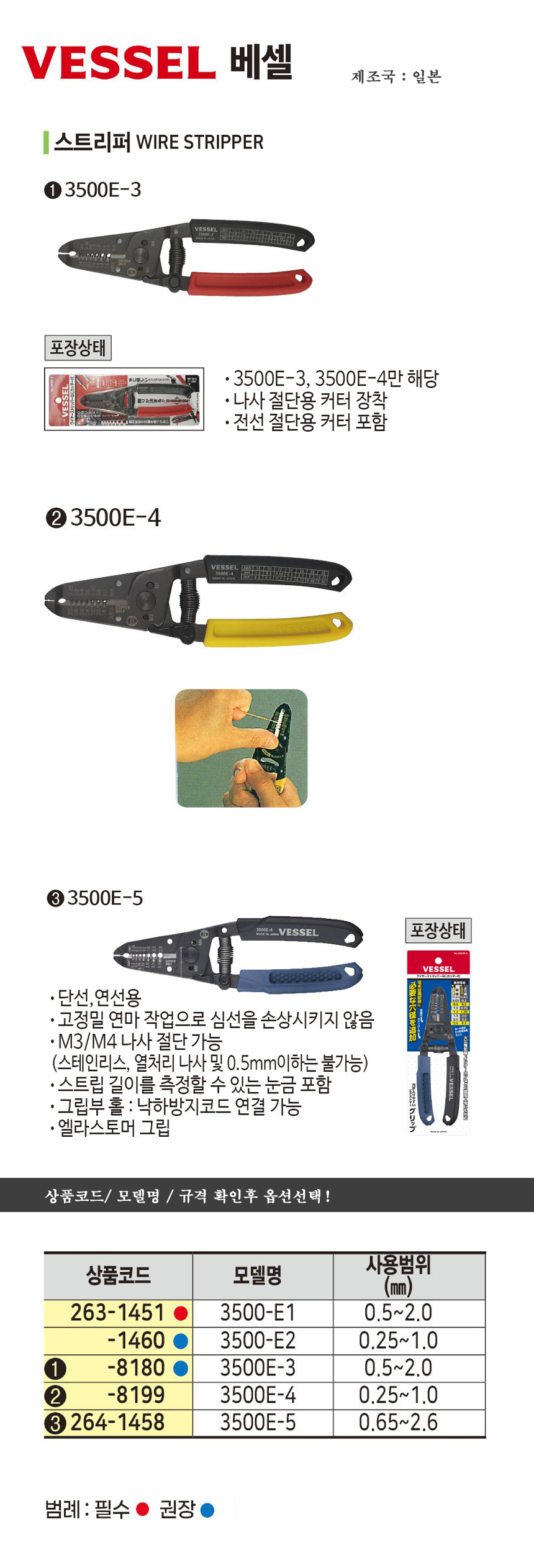 베셀 수동스트립퍼 3500E-5(0.65~2.6mm) VESSEL