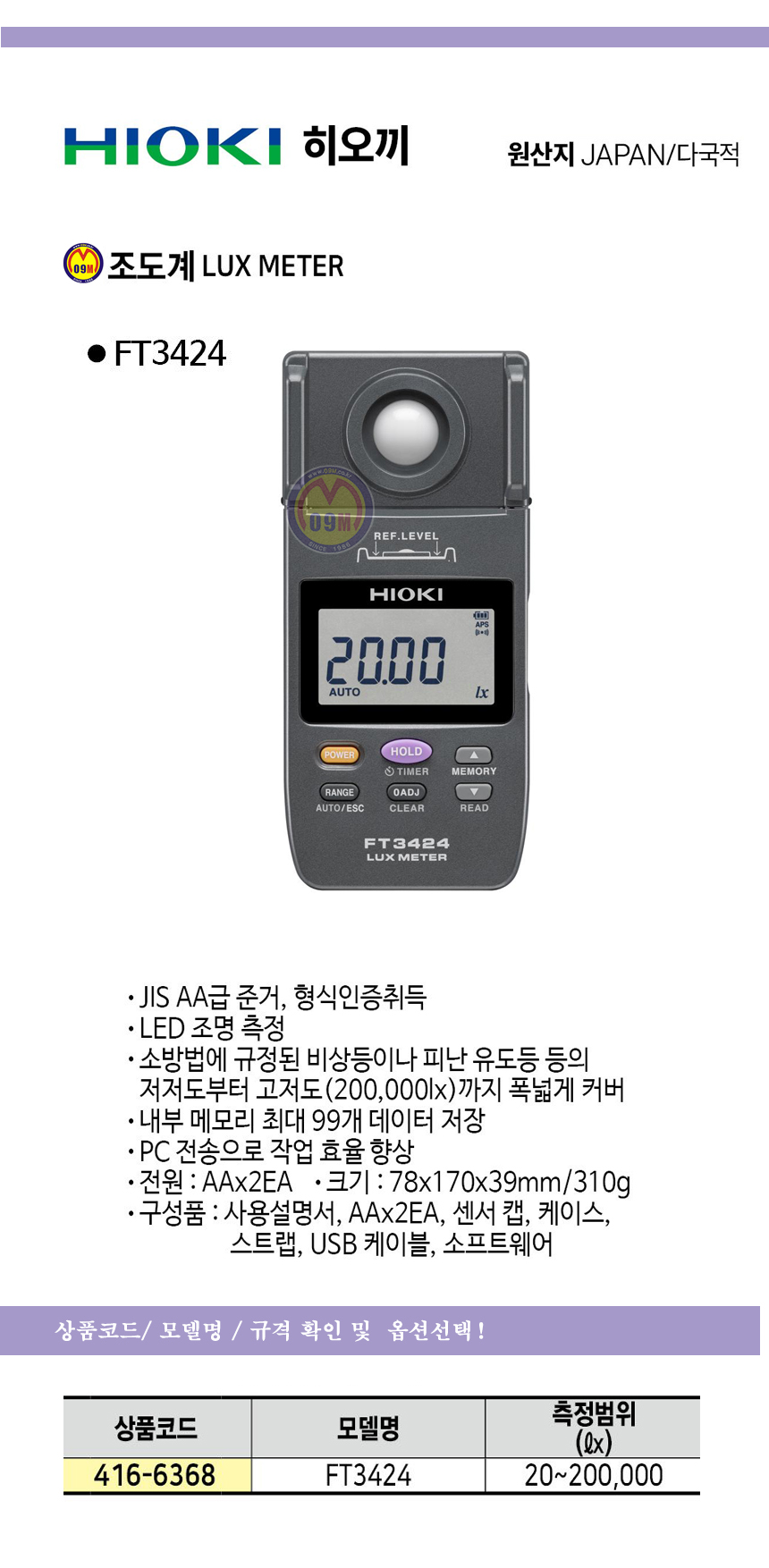 히오끼 조도계(조명측정) FT3424 HIOKI ,테스타기, 공구몰 416-6368