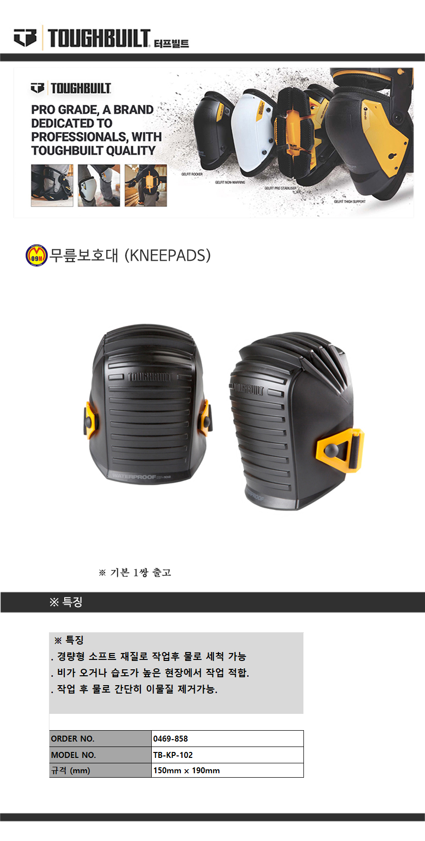 터프빌트 무릎보호대 세트 TB-KP-G203 (1쌍) (TOUGH BUILT) 고무 / 탈부착가능 0477397