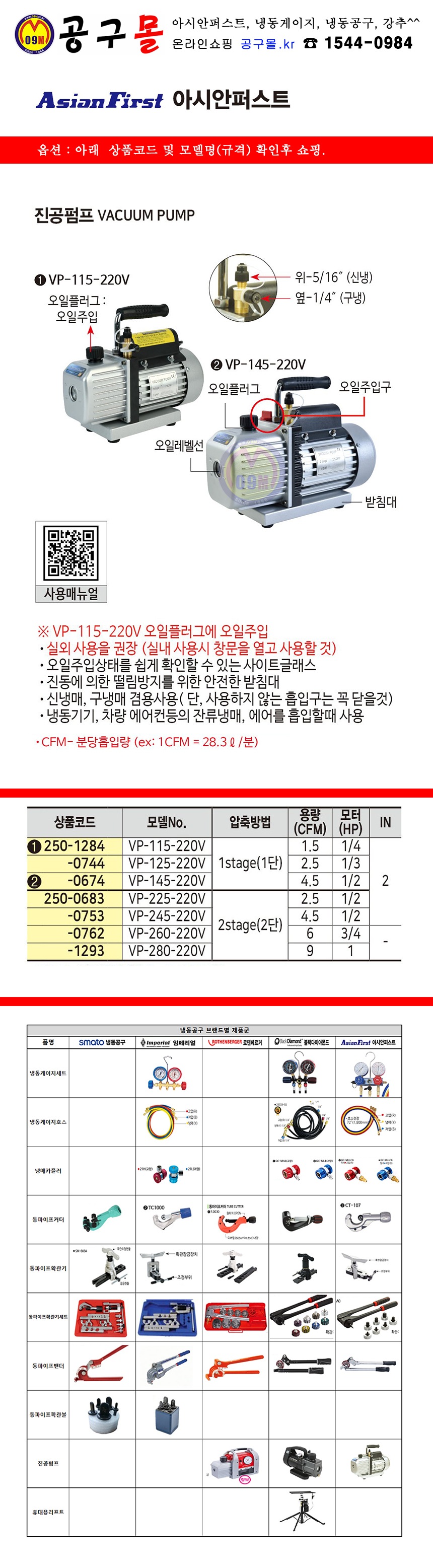 AsianFirst 진공펌프 VP-145-220V,VP-225-220V 공구몰, C250-0674