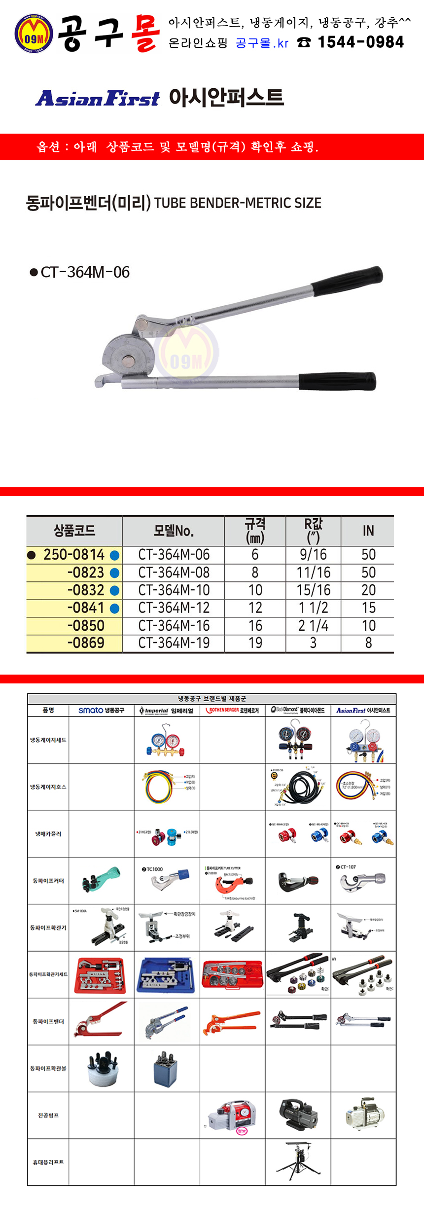 AsianFirst 동파이프벤더 CT-364A-06, CT-364A-08 공구몰, C250-0452