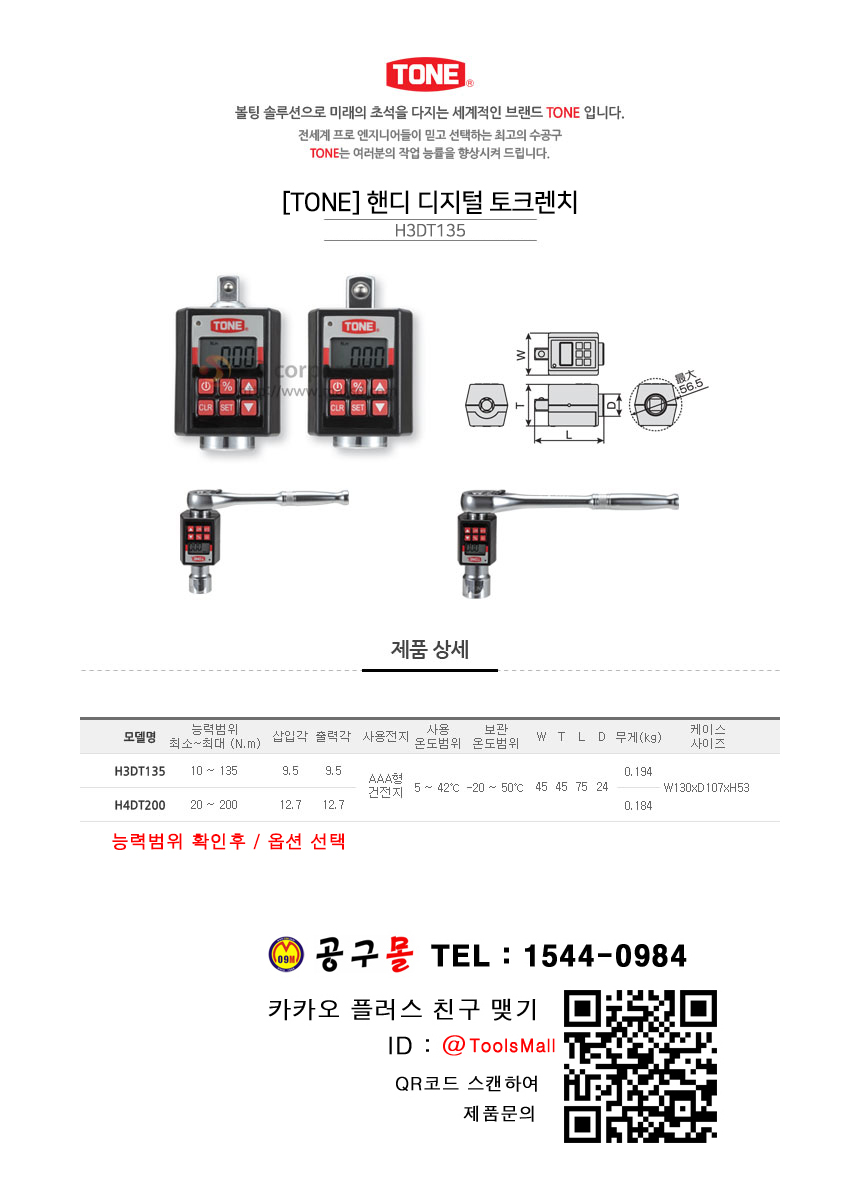 토네 디지털 토크렌치 H3DT135/H4DT200 (3/8,1/2) 건전지사용,아답터타입, TONE