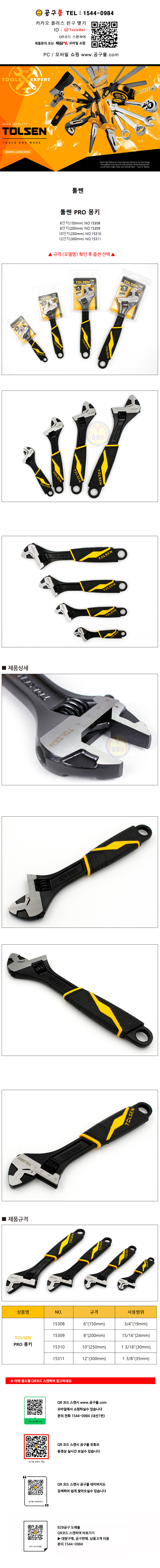 툴쎈 몽키PRO 10(250mm) NO.15310 - 12(300mm) NO.15311 몽키스패너 TOLSEN, 공구몰닷컴