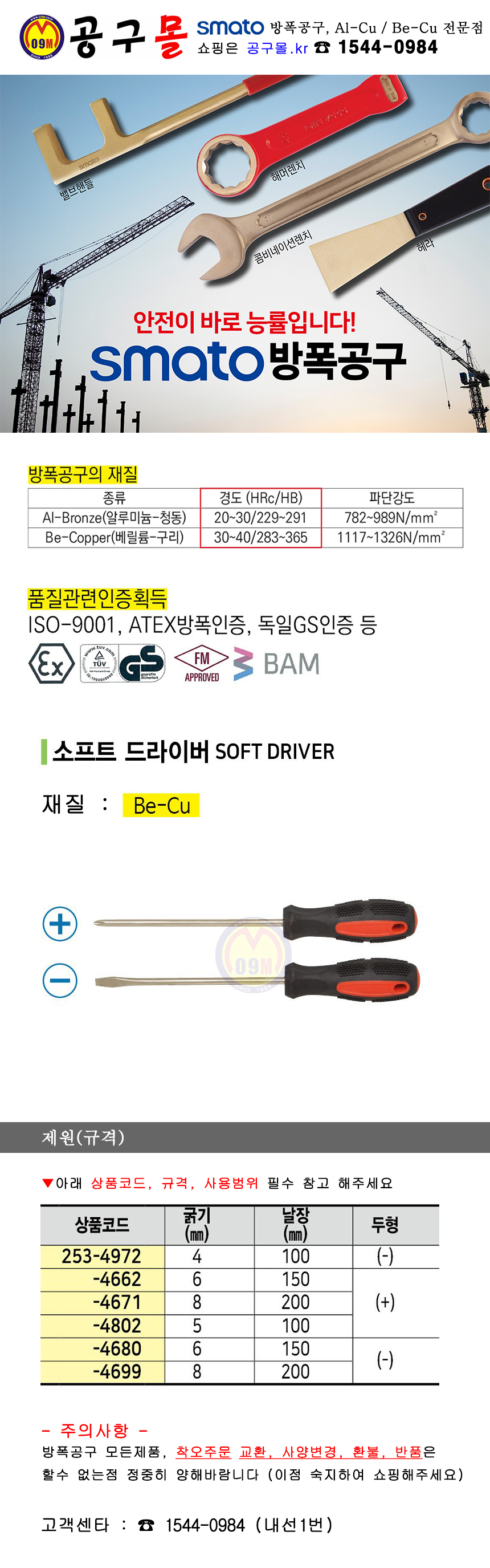 세신 (방폭)드라이버 BE-CU 4x100mm/8x200mm (십자/일자) SESHIN BUFFALO, 방폭공구, 공구몰 253-4680