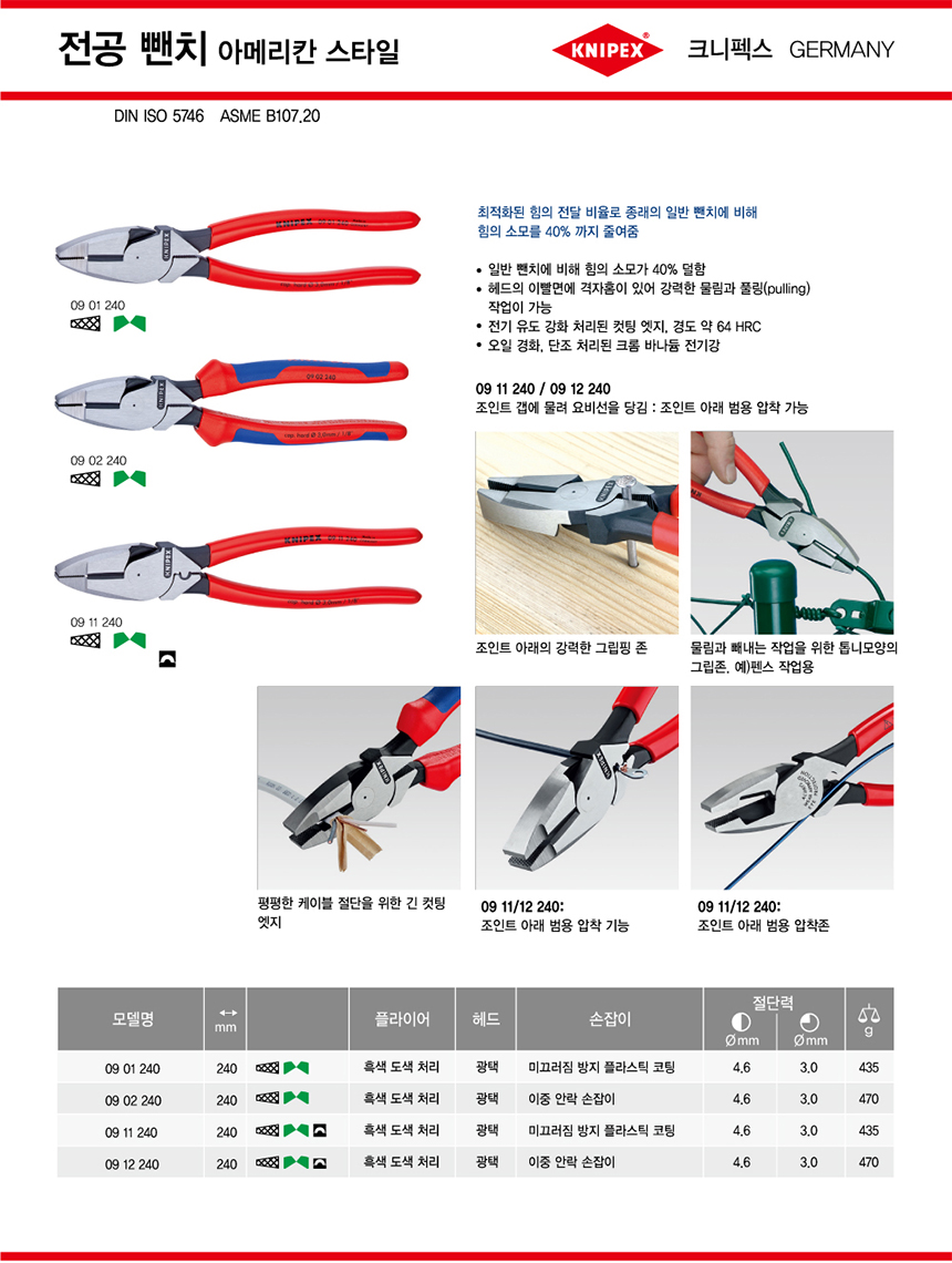 크니펙스 뺀치(압착) 09-11-240, 09-11-240SB 압착뺀치, Knipex 독일공구, 독일수공구 공구몰추천 101001010065