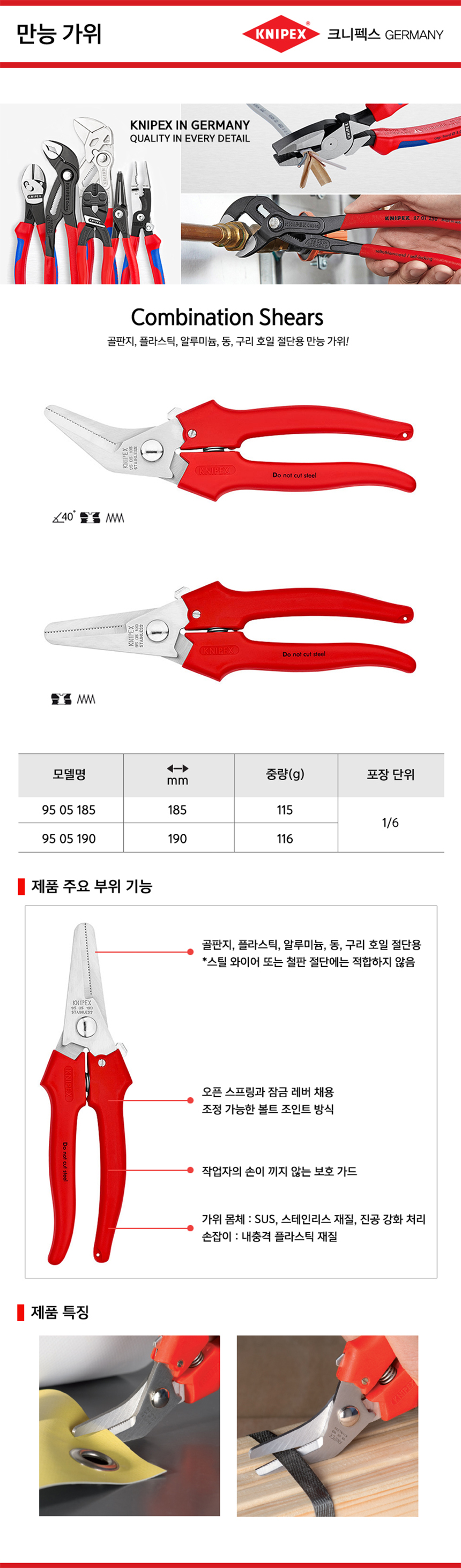 크니펙스 가위(만능) 95-05-185, 95-05-190SB 만능가위, 막가위 Knipex 독일공구, 수공구 작업공구 공구몰 101001340037