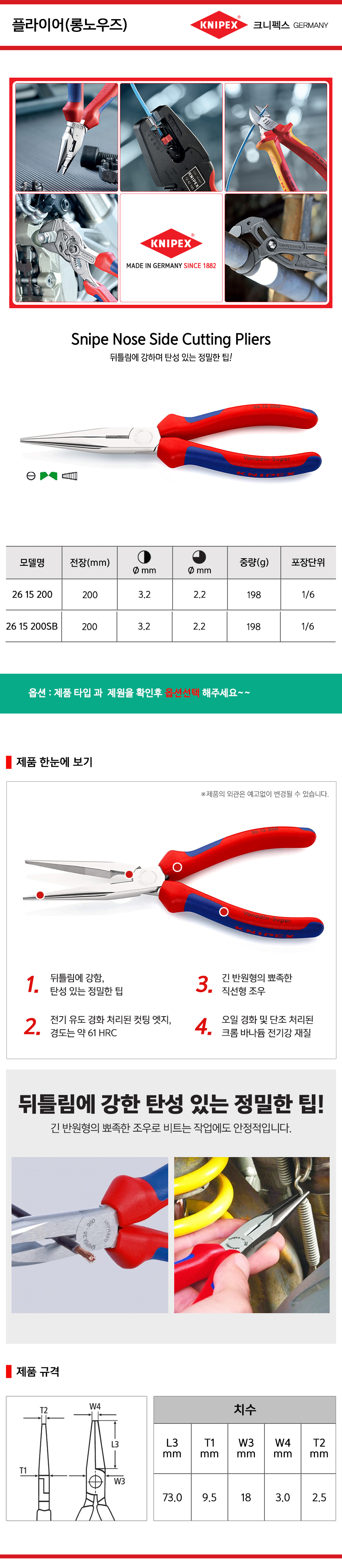 크니펙스 플라이어(롱노우즈,절연) 26-15-200, 26-15-200SB Knipex 독일공구, 공구몰 101001020087
