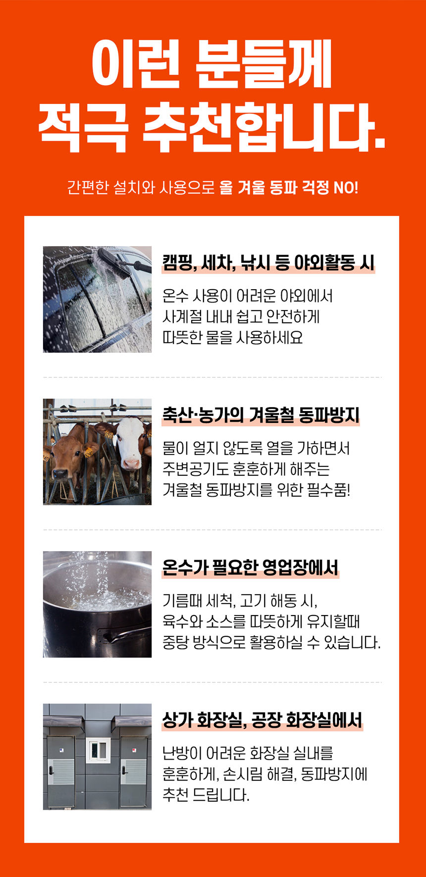 국자형 물히터 700mmx4.5KW(자동) 제이에스전열 돼지꼬리 온수히터