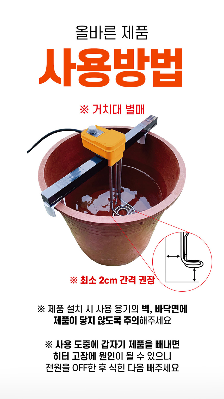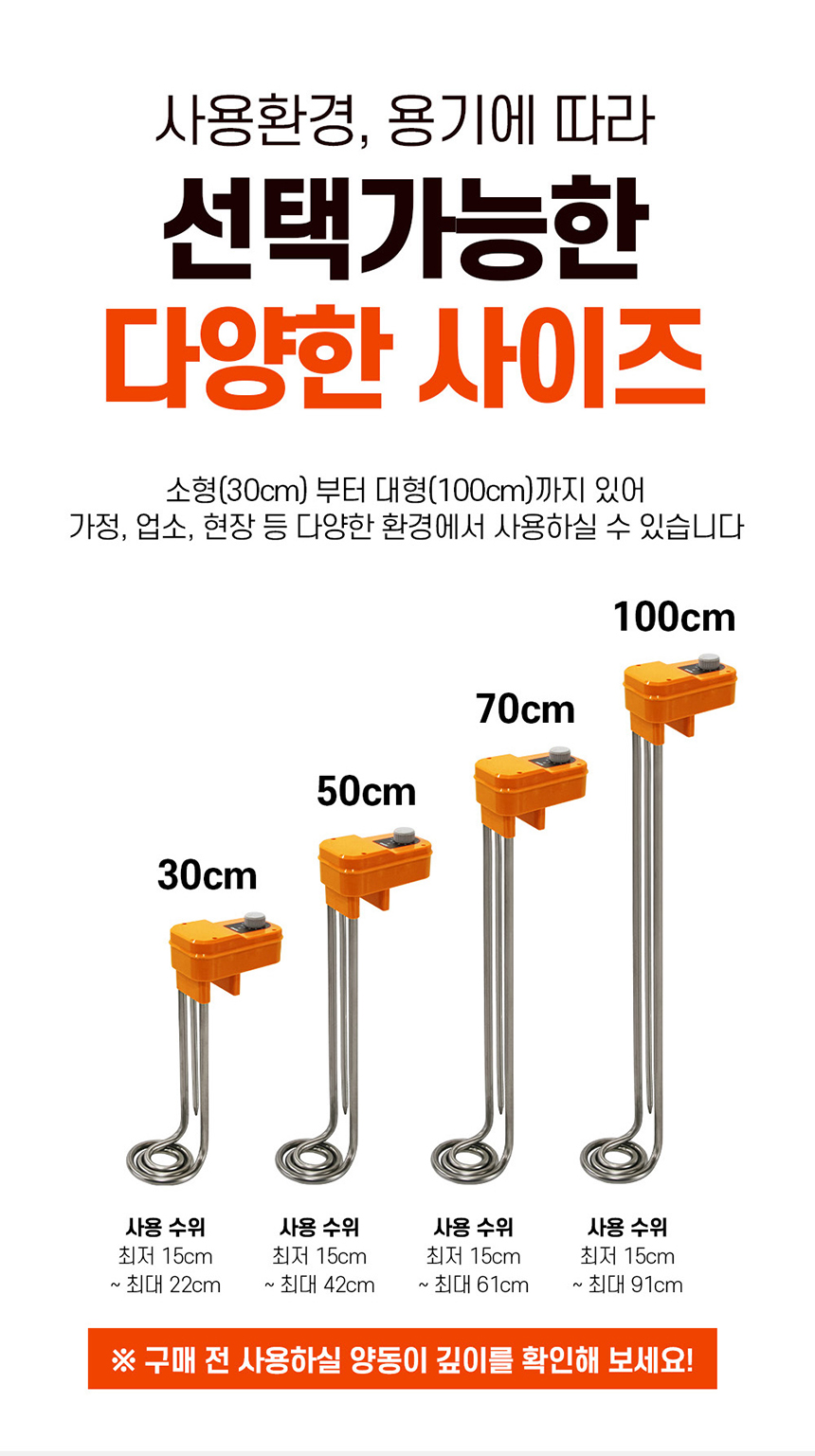 국자형 물히터 700mmx2.5KW(자동) 제이에스전열 돼지꼬리 온수히터