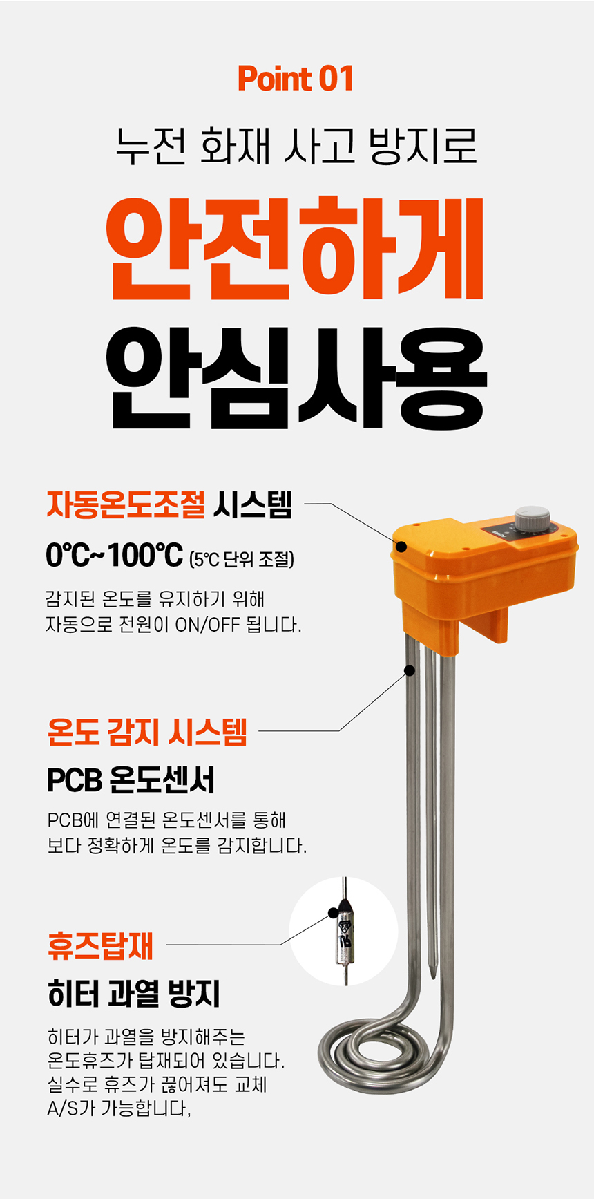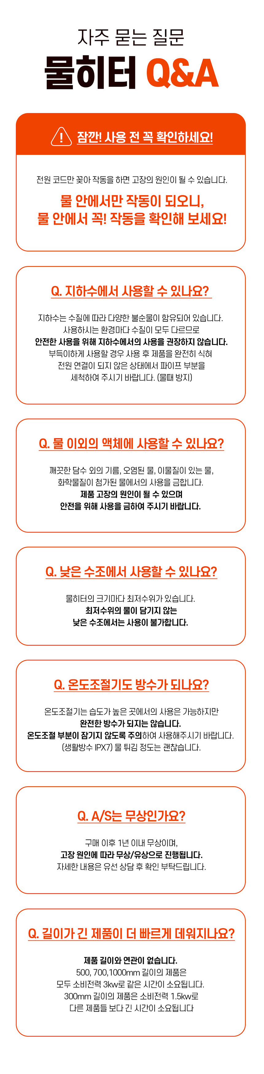 국자형 물히터 1000mmx2.5KW(자동) 제이에스전열 돼지꼬리 온수히터