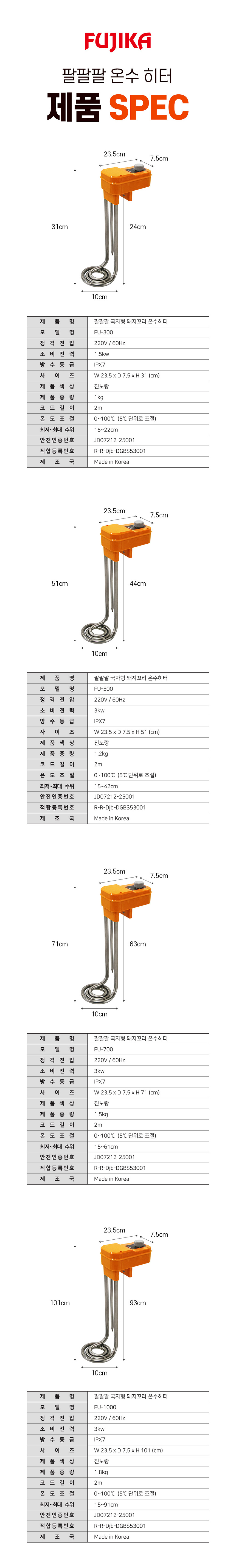 후지카 팔팔팔 돼지꼬리 물히터(자동) FU-500, 700, 1000-3KW (300-1000mm) 대건, 공구몰