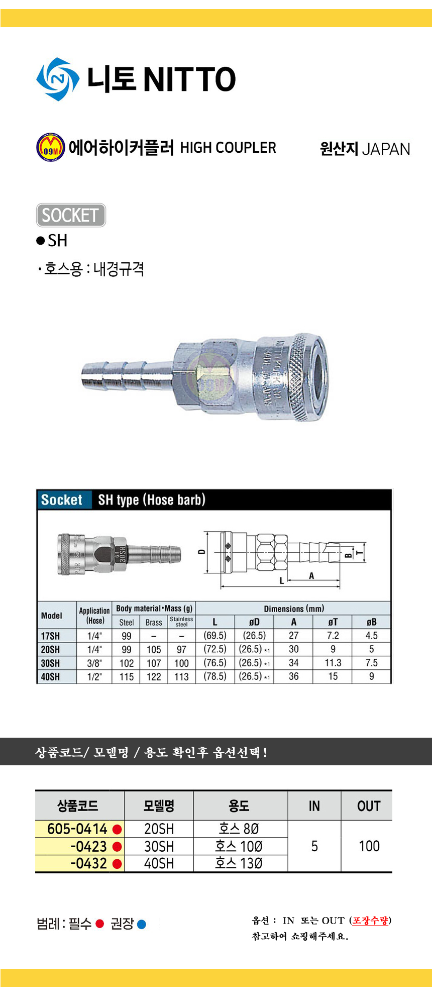 니토 하이커플러(SH) 20SH/ 30SH/ 40SH NITTO 공구몰 SOCKET 605-0414