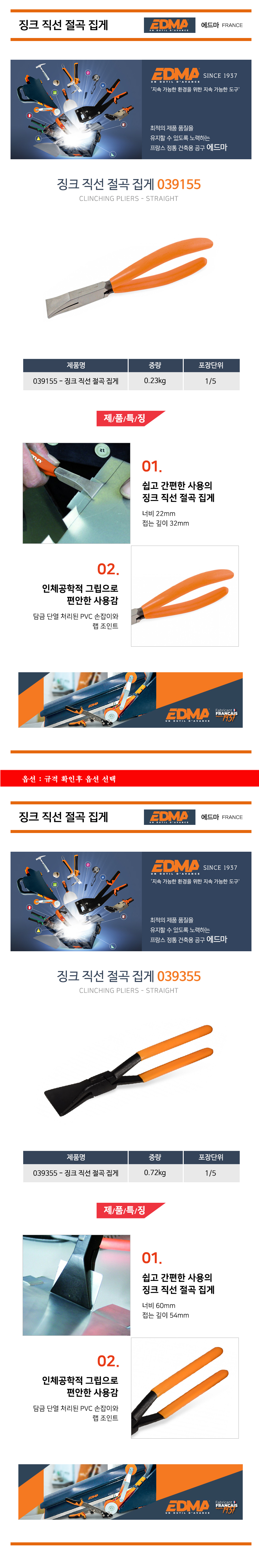 EDMA 징크직선절곡집게 039155, 039355 (폭22mm, 60mm) 에드마 공구몰